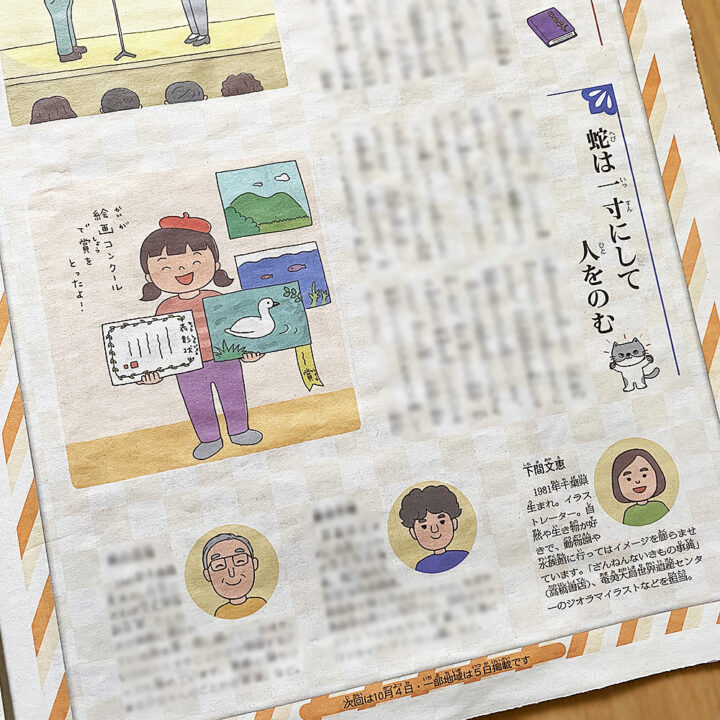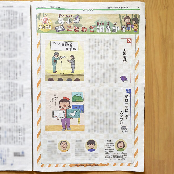 株式会社毎日新聞社様『毎日小学生新聞』「毎小ことわざ調査部」9月号のイラストを担当させていただきました。