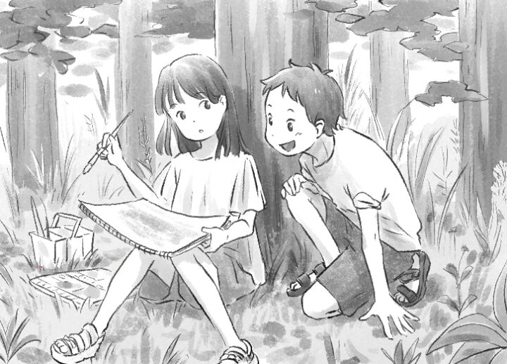 愛知県教育振興会さま発行の、あいち読書タイム文庫の中のお話の1つ「麦穂の長い夏休み」(加藤裕子さん作)にて、扉絵や挿絵、巻末のしおり等描かせていただきました。