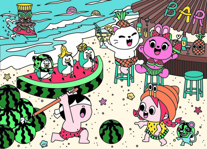 「スイカ割り」をテーマにした間違い探しのお仕事です。