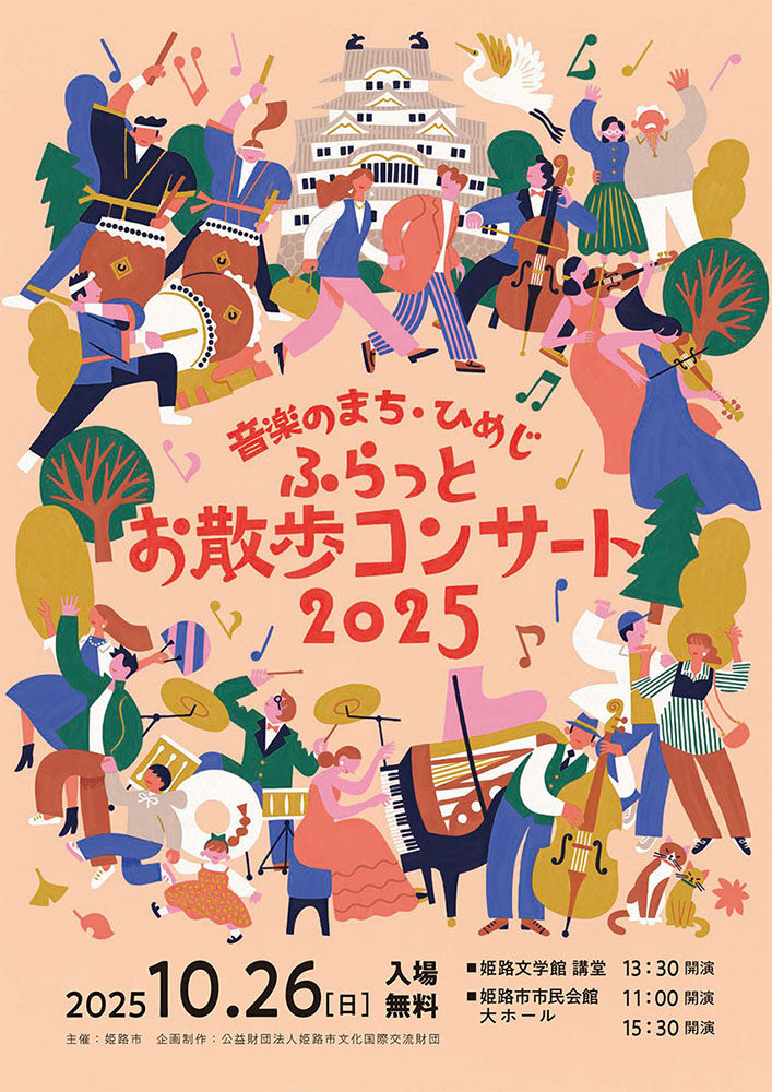 10 月 26(日)に姫路文学館、姫路市市民会館で開催された音楽のまち・ひめじ「ふらっとお散歩コンサート2025」にイラストを描きました。