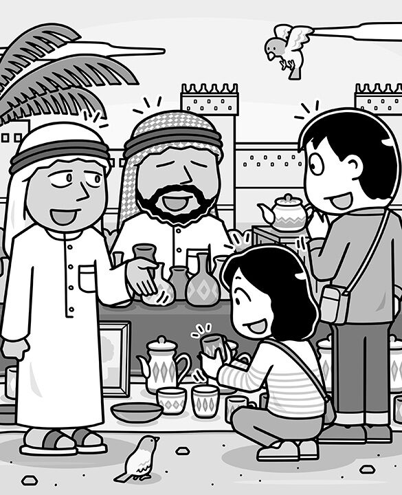 まちがい探しで描いた、「サウジアラビア・トーブ」がテーマのイラストレーションです。