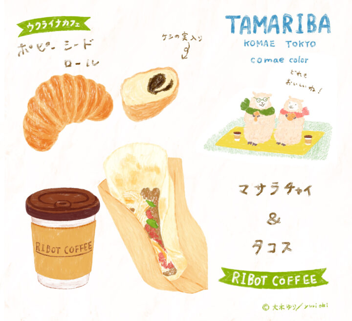 イラストの食べ物は、今回買った物で、どれも美味しかったです!