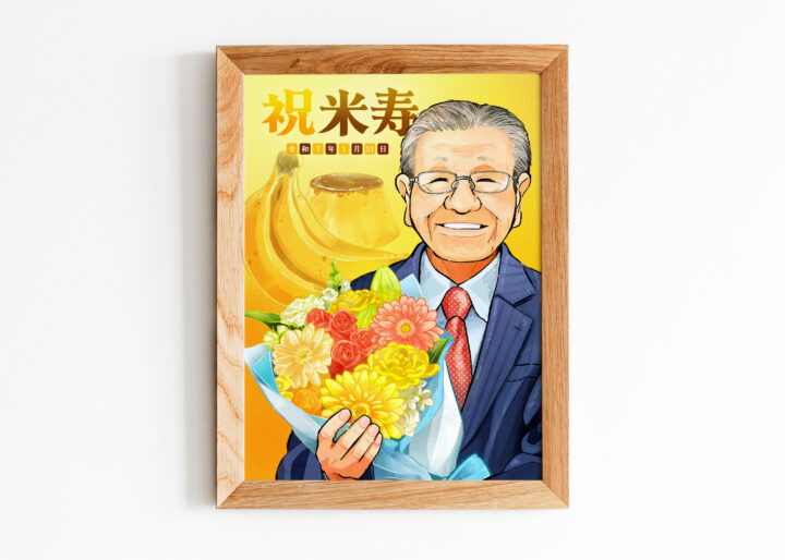 知人が勤務する企業の会長様の米寿記念として、似顔絵イラストを制作しました。