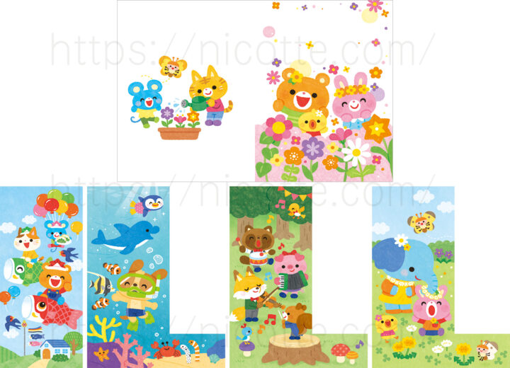 子供やファミリー、女性向けを中心に、絵本、教材、書籍、文具など媒体問わず幅広く活動中。デジタルでありながらも、手描き感のあるやわらかい・明るい・親しみやすいタッチが得意です。くっきり元気なものから、絵本のようなタッチ、ほんわか優しいタッチ、目的に合わせて制作致します。