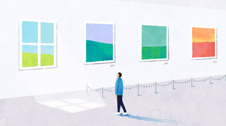 美術館、窓、人