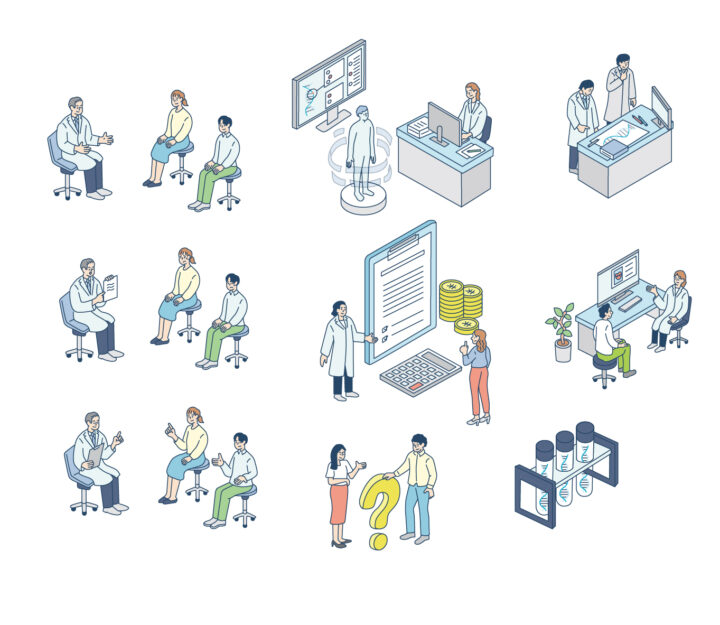 診察や遺伝子検査など、デリケートなシーンをシンプルに表現しました
