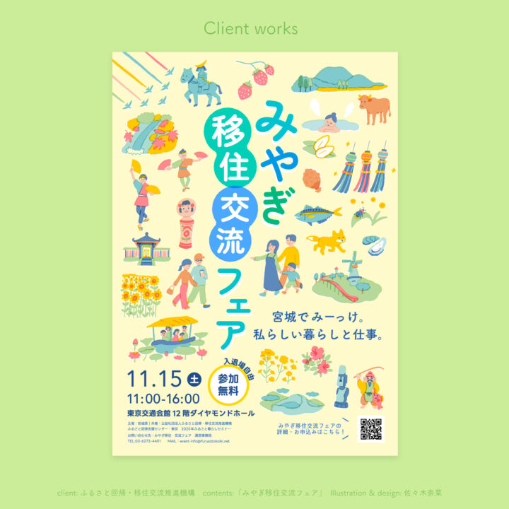 移住交流イベントのキービジュアルのイラストレーションとデザインを担当しました。