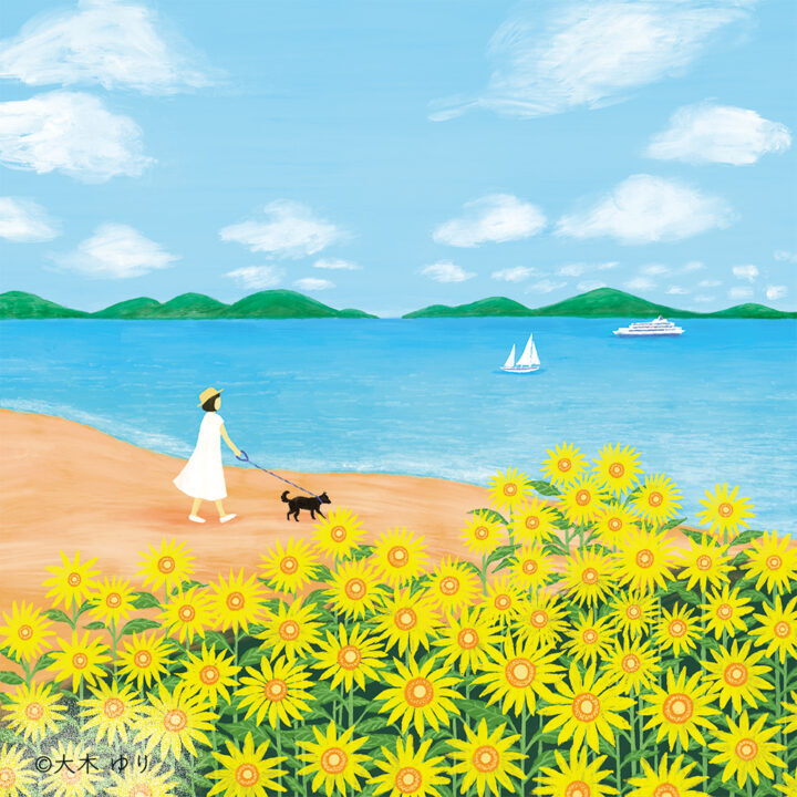 デザイナーさんが、この季節にカモメを入れたいのであれば、頭は黒くして下さい。と指示があり、黒が目立たないように、ブルー系に近い色味にしました。