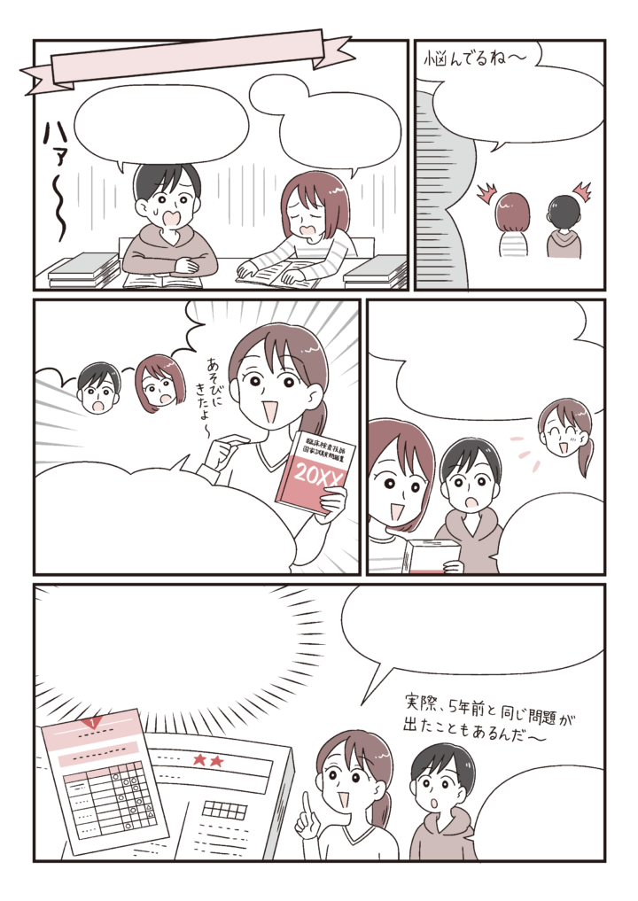 堅くなりがちな国家試験関連の書籍に、安心感とモチベーションを添える構成を意識しました。