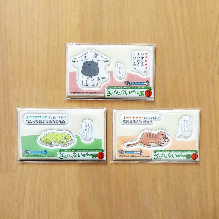 書籍のイラストを使った『ざんねんないきもの展3』オリジナルぷっくりシール(全3種)がセットになった入場チケットも販売されています!!