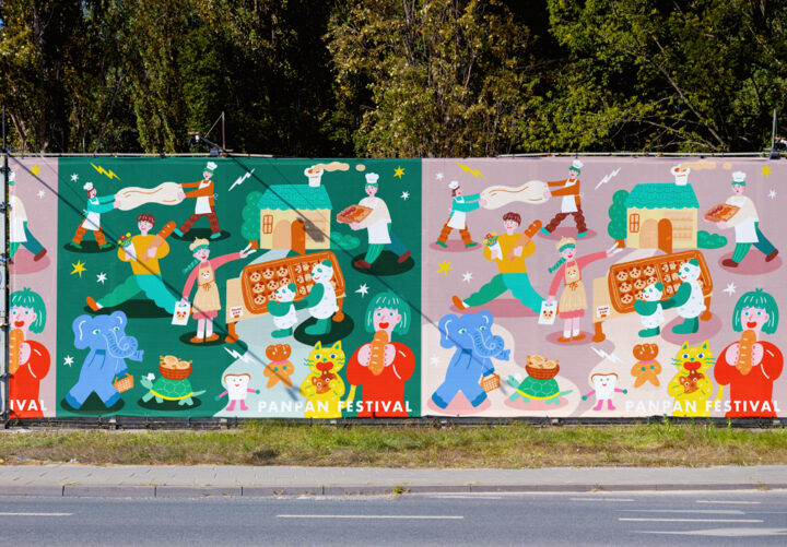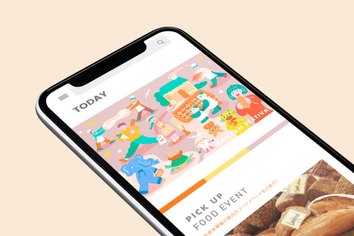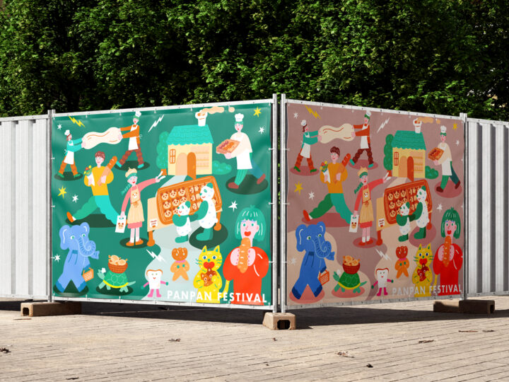 パンのイベントをイメージしてポップで楽しいイラストで制作しました。イベントに使用される想定でWEBサイトや広告に展開したイメージを作成。