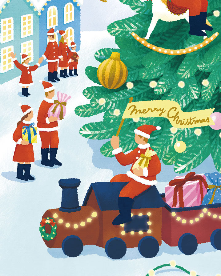 平安時代編では、かわいい貴族の子どもを主人公に、絵巻物や御殿建築を背景としながら、かぐや姫や光源氏などが登場する少し不思議な世界観を表現しました。当時の建築様式や装束、小物などに配慮しながら制作しています。