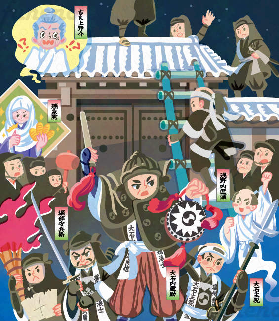 太鼓をたたいて吉良邸に討ち入る感じのところ。