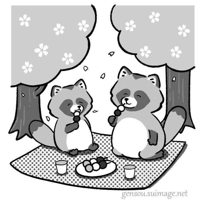 また、読者のひろばのカットでは、お花見している狸親子を描きました。