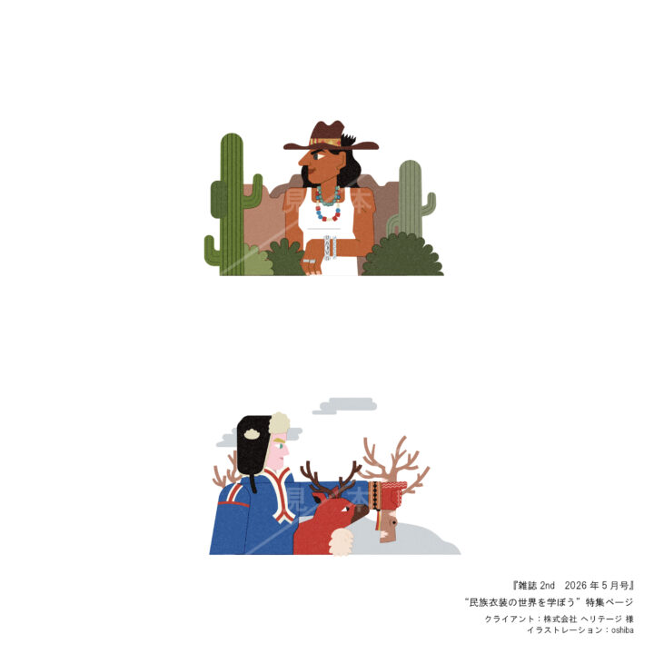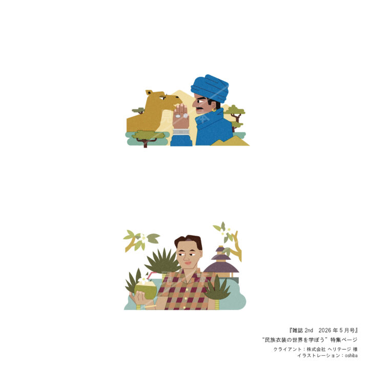2026年5月号の”民族衣装の世界を学ぼう”特集ページのイラストレーションを担当いたしました。