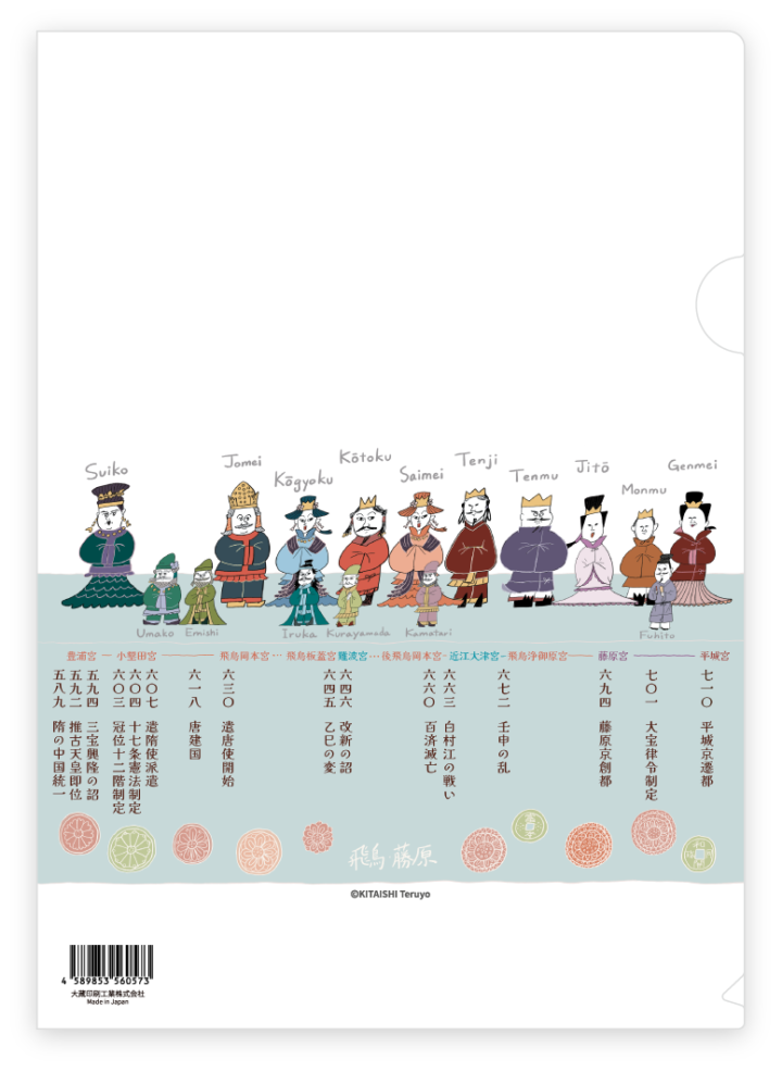 飛鳥時代の学習ツールとしてはもちろん、観光のお土産にも使っていただけるデザインです。