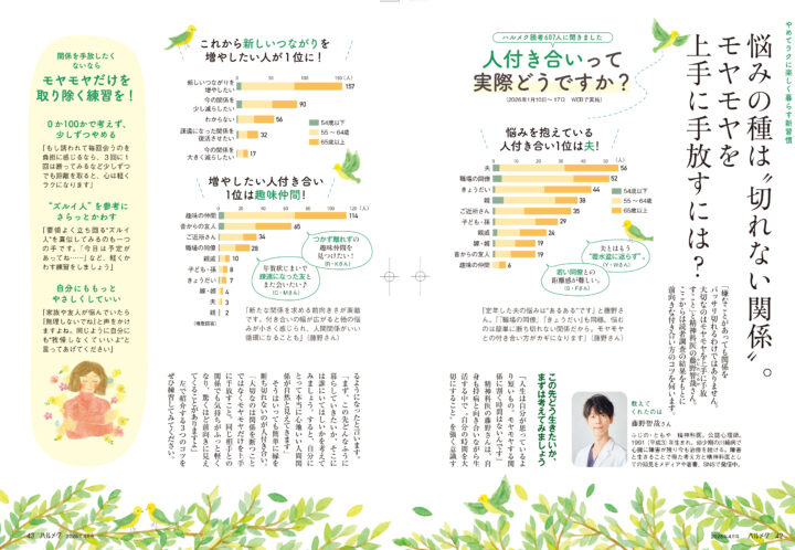 2026年3月10日に発行された「halmek4月号」の「人付き合い」」特集ページ