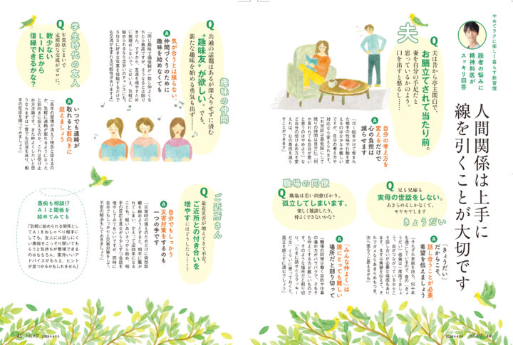 白鳩4月号 悩み相談Q&Aでイラストを担当しました。