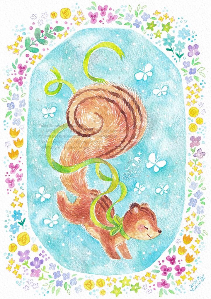 私の描いたリスとお花の絵にぴったり合うように
