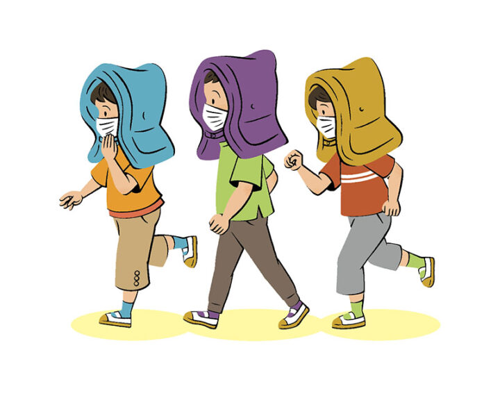 様々な親子の様子、注意する子どもの行動、子どもへのポジティブな接し方などのイラストを描きました。