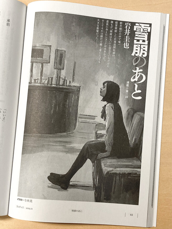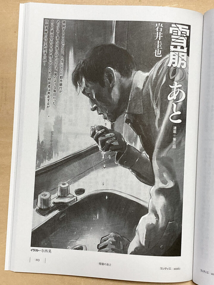 角川春樹事務所発行の文芸誌「ランティエ」で連載小説『雪崩のあと』(著者・岩井圭也さん)の扉絵を担当しています。