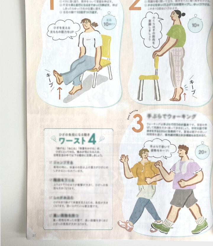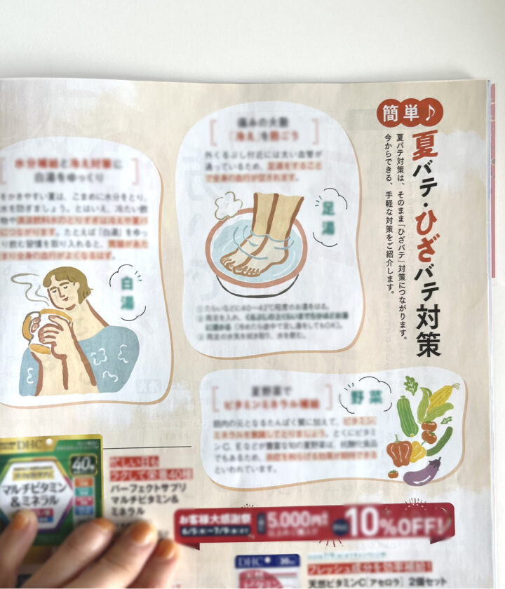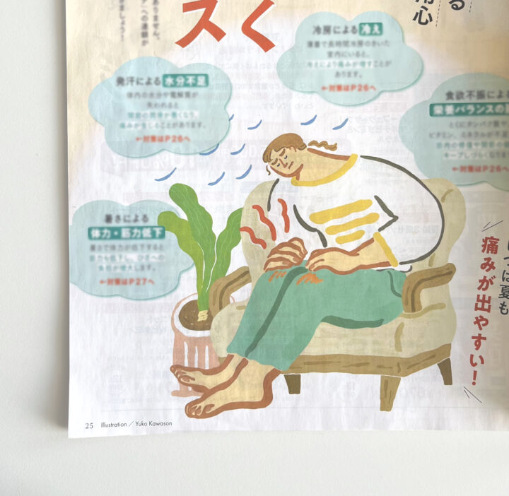 2025年7月号「夏バテ・膝バテ対策」のイラストを担当しました。