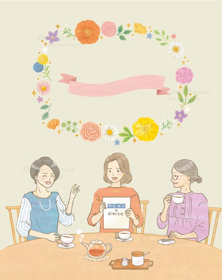 社会保険出版社さまが発行している、被扶養者向け特定検診受診推奨リーフレットの表紙・中面イラストを制作しました。