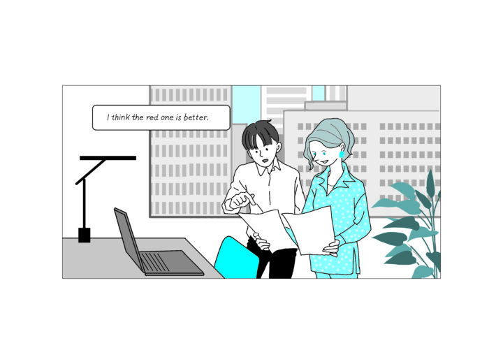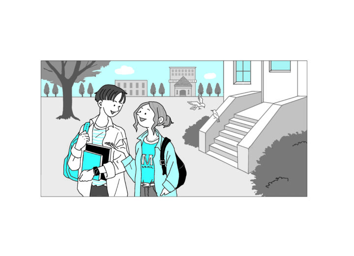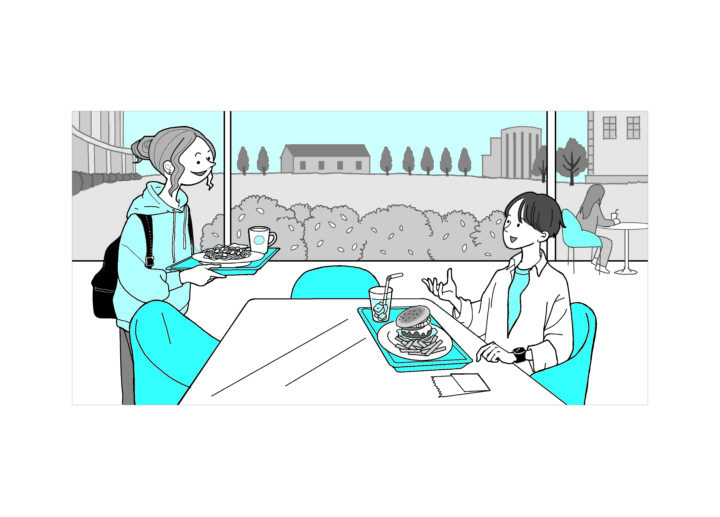 英語のスキットを通して、二人の大学生の進路を決めるまでの物語を描きました。