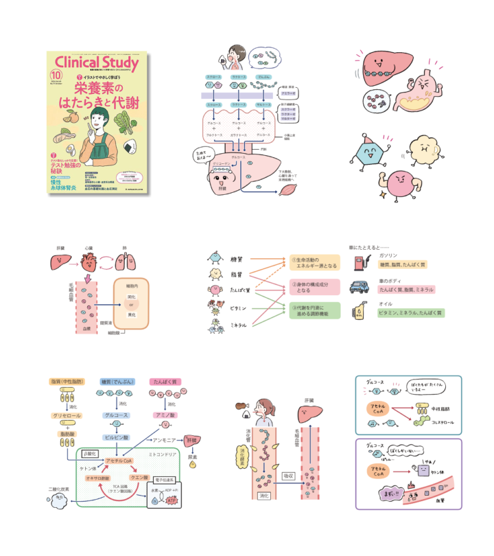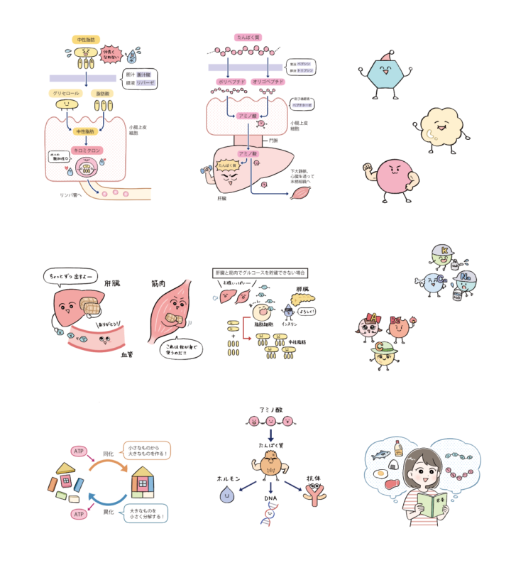 「栄養素のはたらきと代謝」コーナーのイラストを担当しました。