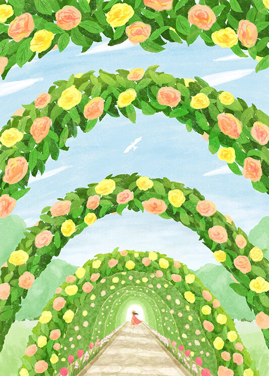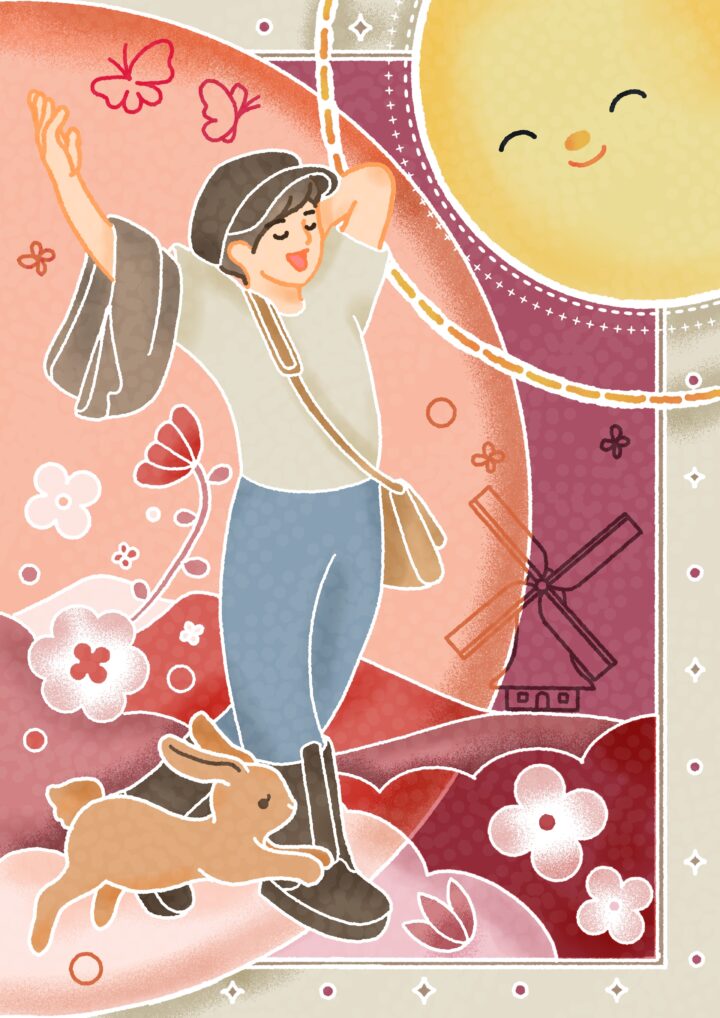 北風との対比でポカポカした温度を感じられるようにしました。