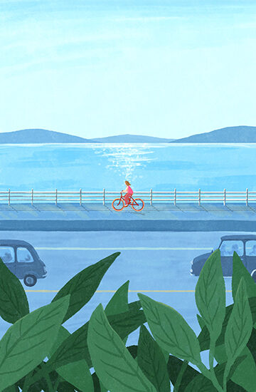 北風ver.は太陽との対比で寒々しく、風の勢いを感じられるようにしました。