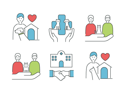 犬猫アイテム通販雑誌「PEPPY」内、ペピイ企業理念ページに使用するイラストを描かせていただきました。