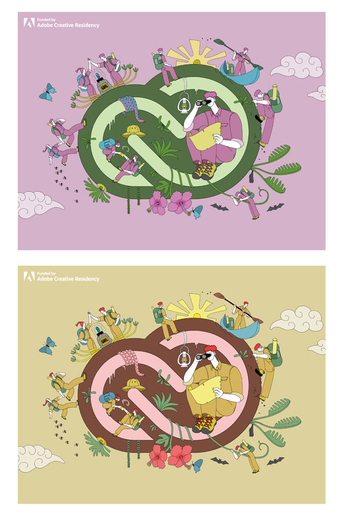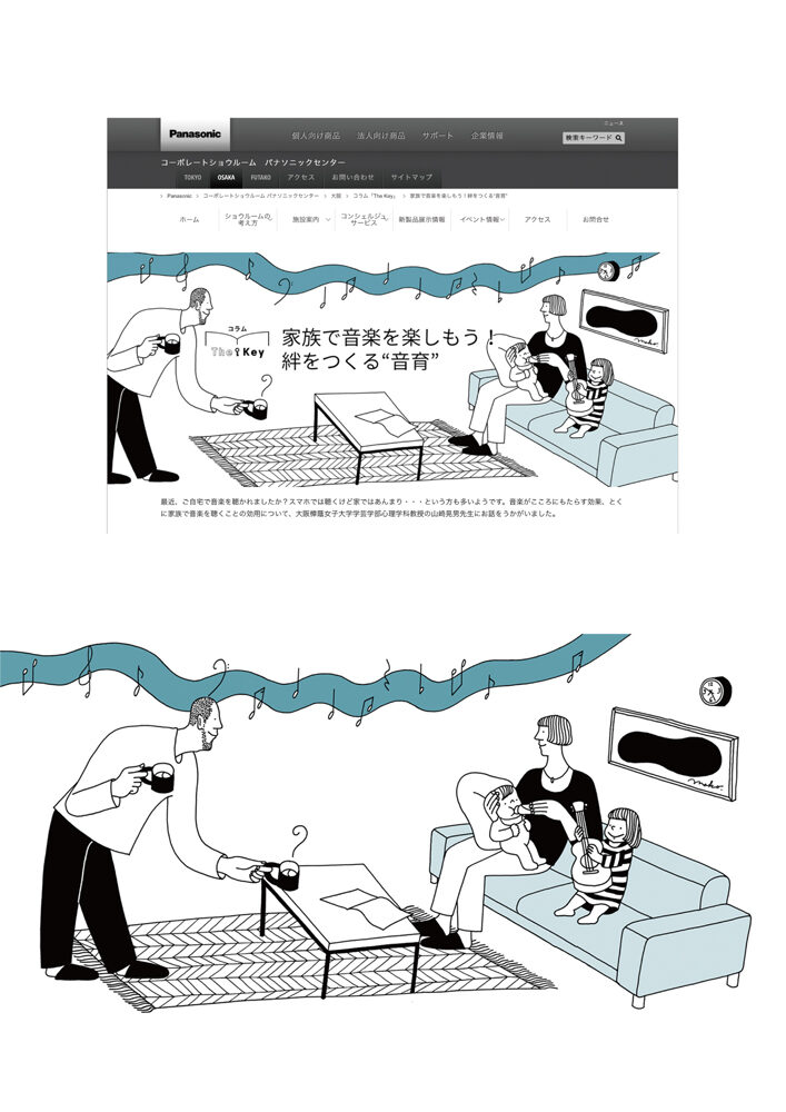Since 2022-2025, I created the cover illustration for the pamphlet “Sekijuku Hiraku.” I joyfully depicted students happily learning at this small-group, individual tutoring school. I always try to add little playful elements, like a child peeking from behind a screen. I was delighted when people said even these small touches were fun.