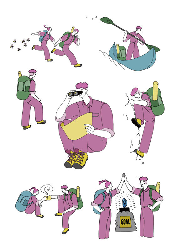 【2022年-2025年】パンフレット『関塾ひらく』の表紙イラストを担当しました。少人数制・個別指導塾で生徒さんが楽しく学んでいるようすを楽しく描きました。ついたての陰からのぞいている子がいたりなど、毎回ちょっとしたあそびの要素を提案しているのですが、ちょっとしたことでも面白いと仰ってくださって、うれしかったです。