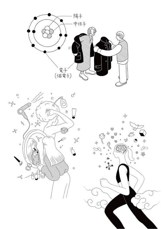 書籍「さぁ、化学に目覚めよう」帯、挿絵