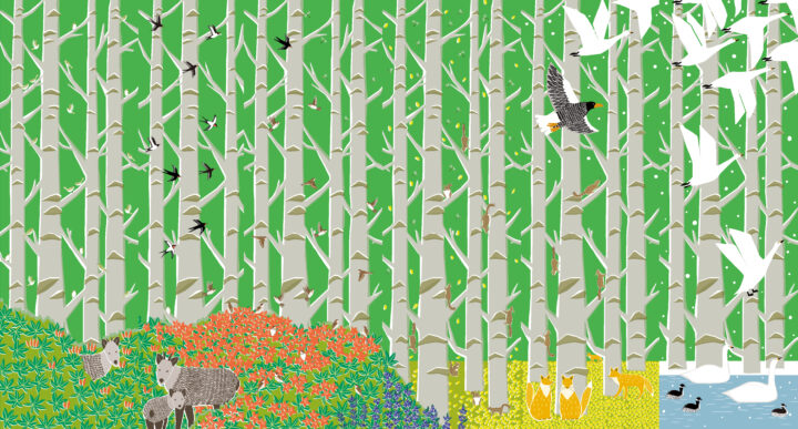 スキンケアブランドAnuaのクリスマスコフレ「雪明り煌めくホリデーナイト」ダーマラインのパッケージと背景イラストを描かせていただきました。