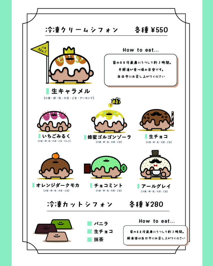 北海道のシフォンケーキ屋 S`S chiffon のロゴ制作、キャラクターデザイン、オリジナルグッズの制作。