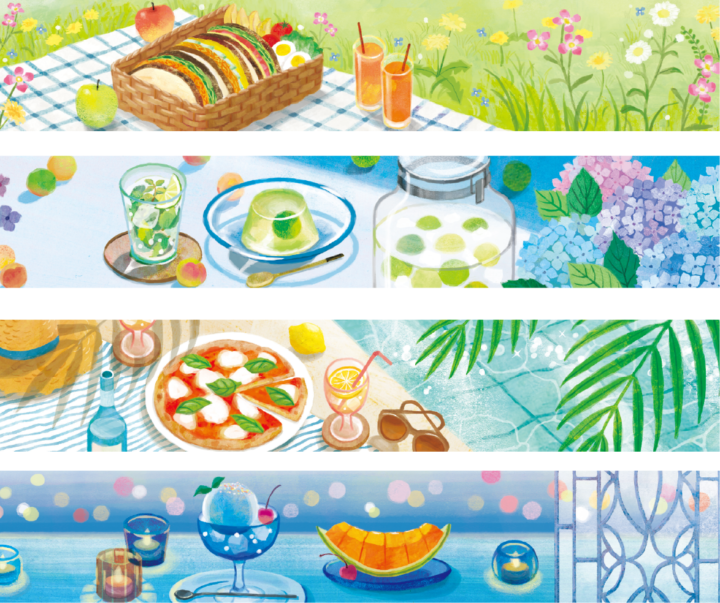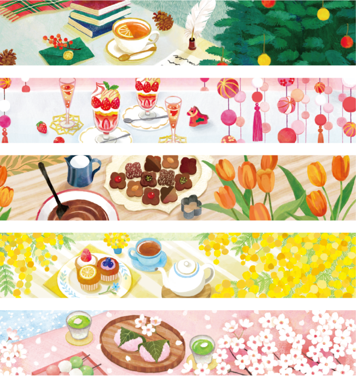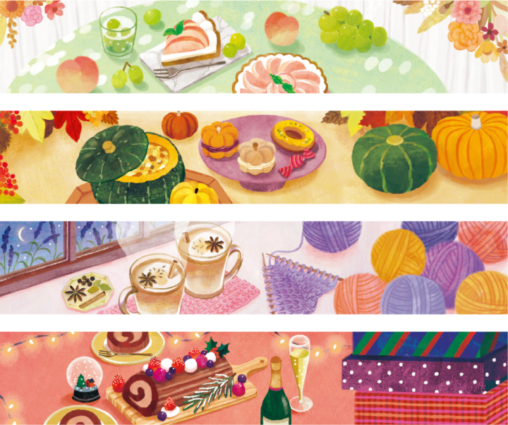 「癒しの空気感」「季節の食」をテーマに、四季折々のテーブルコーディネートの中で、スイーツやドリンクを楽しむ「至福のとき」を表現しました。