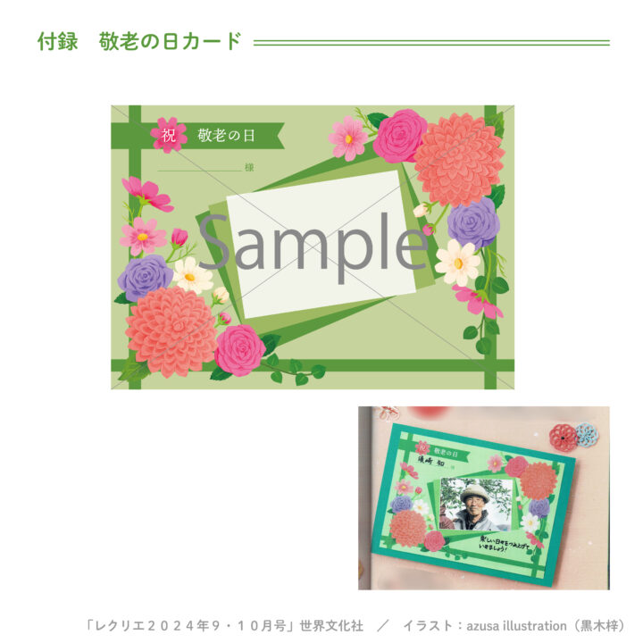 レクリエ2024年9・10月号(世界文化社様/2024年8月1日発売)付録「敬老の日カード」