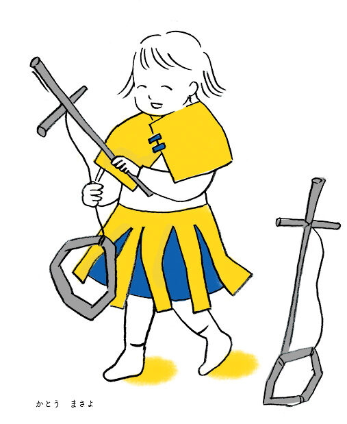 耳なし芳一を、あまり怖くない感じで描いてほしいというご要望でした。右下の花は沙羅双樹です。