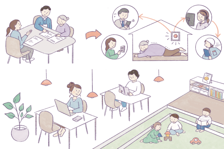 施策のイメージがわくように、具体的なシーンをやさしいタッチで描きました。