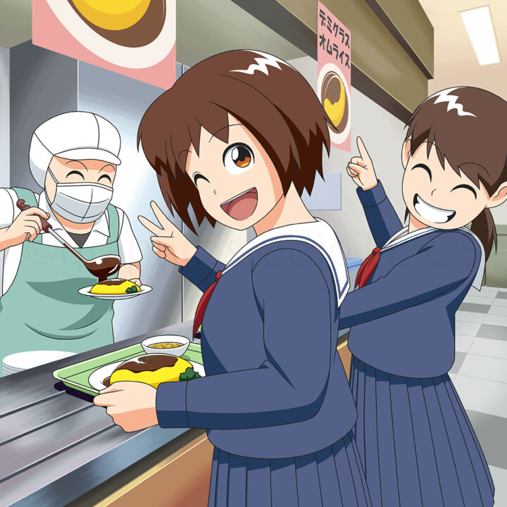 今日の学内食堂のメニューは、生徒たちに大人気のオムライス。