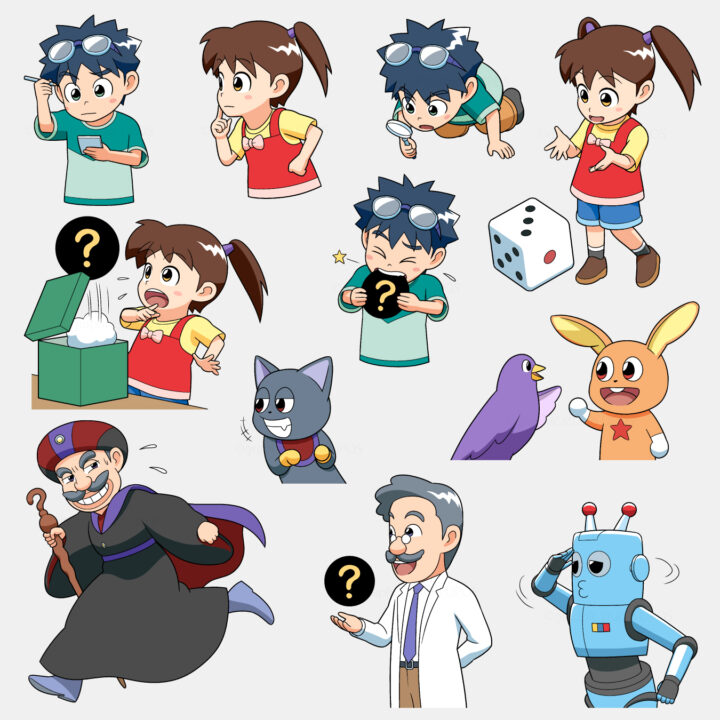 異世界から人間界に迷い込んだウサギと鳥。彼らに助けを求められた小学生2人が、近所に住む博士やロボットのサポートを受けながら、町の人々を困らせる魔王のクイズに全問正解することで平和を取り戻す!