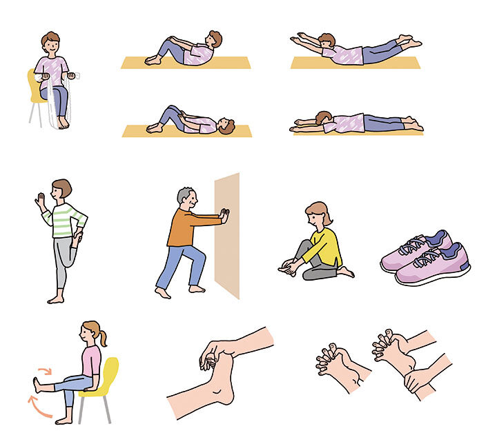 おうちエクササイズ、健康特集などにカットを作成しました。