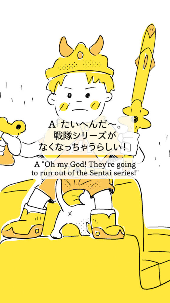 A: “This is bad—looks like the Super Sentai series is coming to an end!”