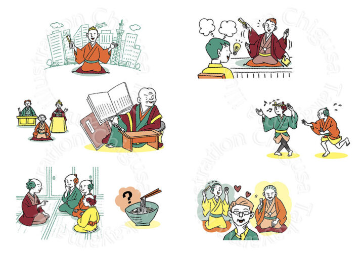 会報誌の特集記事「落語のススメ」にて、カットイラストを担当しました。