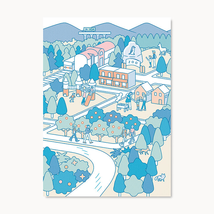 飯田短期大学大学案内2026パンフレットにおきまして、表紙(表1表4)・オープニングページのイラストを描かせていただきました。こちらは裏表紙(表4)となります。