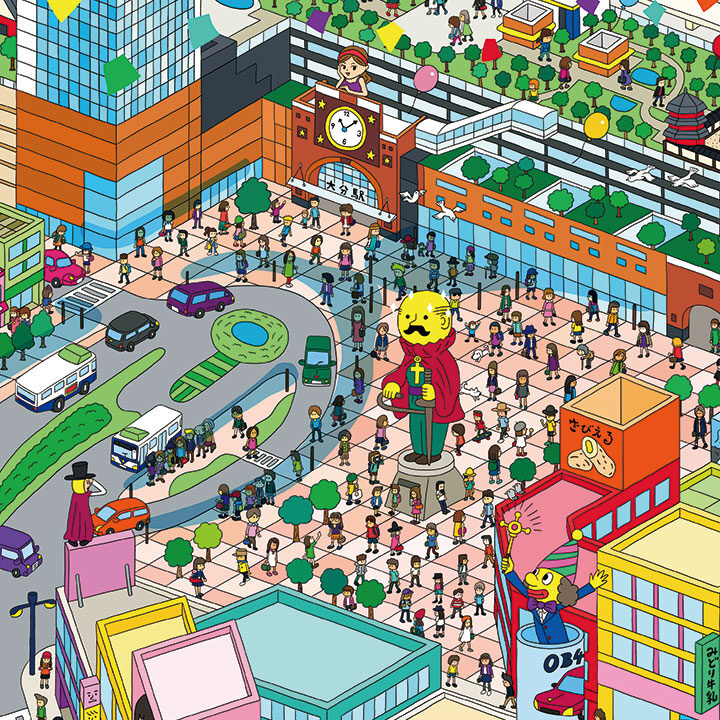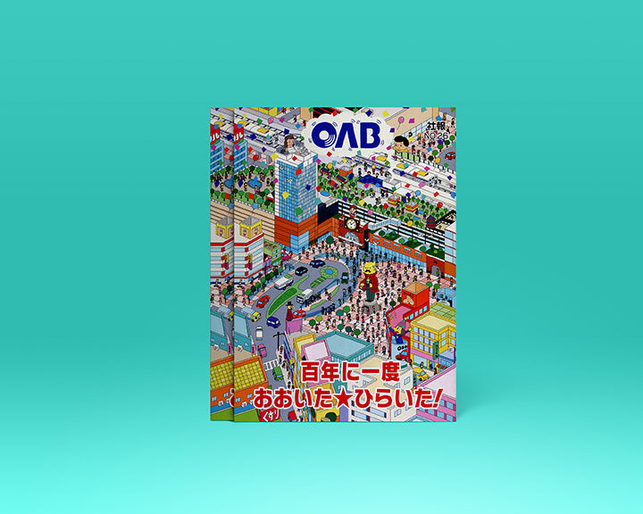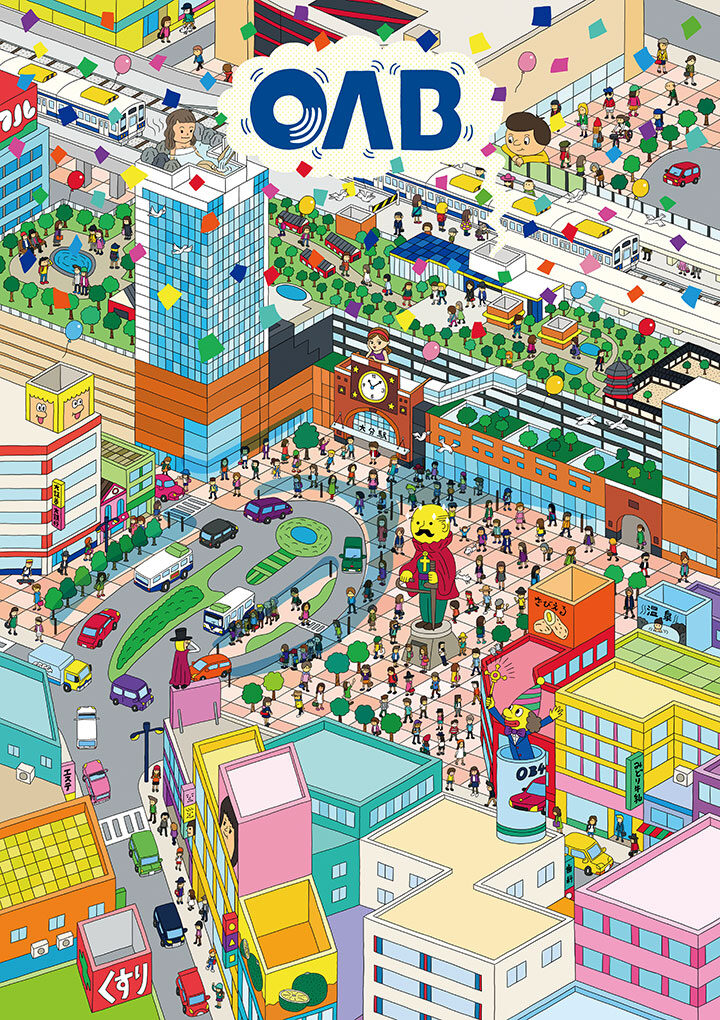 OAB大分朝日放送の社報表紙のイラストを描かせてもらいました。JR大分駅リニューアルに合わせてJR大分駅前広場を楽しい賑やかな雰囲気で描いてみます。JR大分駅の魅力が伝わってくれればいいなと思っています。