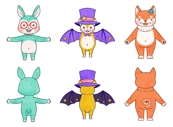 台湾発SNSコミュニケーションアプリ「Humi」の日本展開トライアルキャンペーン中のクリエイターとして参加した際のキャラクター案。採用された左のウサギ「まなラび」を用いて投稿活動をしていました(現在は終了)。