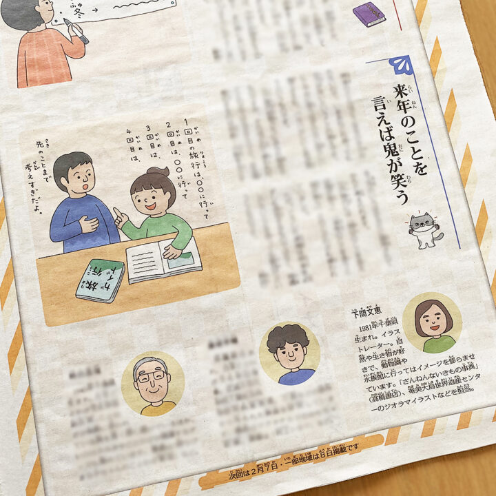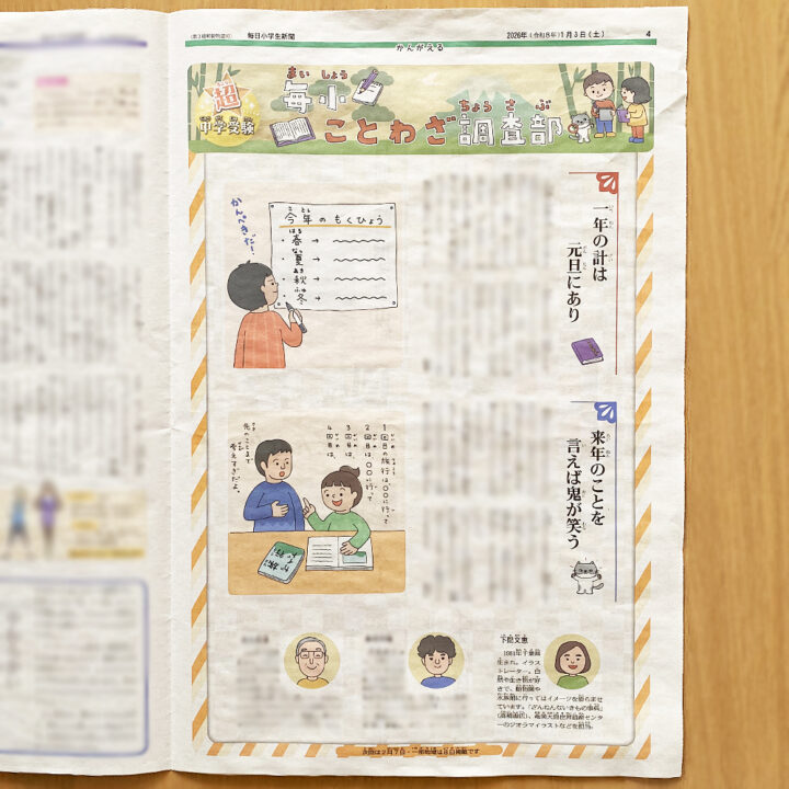 株式会社毎日新聞社様『毎日小学生新聞』「毎小ことわざ調査部」1月号のイラストを担当させていただきました。